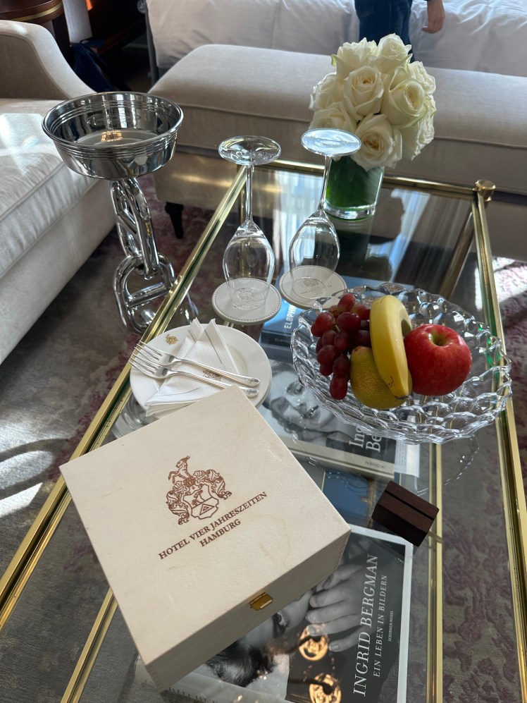 An diesem Tag hatten wir erneut das schöne Glück, von einer besonders zuvorkommenden und ausgesprochen herzlichen Mitarbeiterin des Vier Jahreszeiten empfangen zu werden: Stella Wessels. Mit ihrer sympathischen Art hieß sie uns willkommen und begleitete uns in unsere Suite – ein Empfang, der vom ersten Moment an das Gefühl vermittelte, wieder angekommen zu sein.