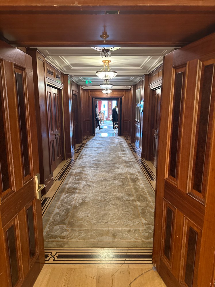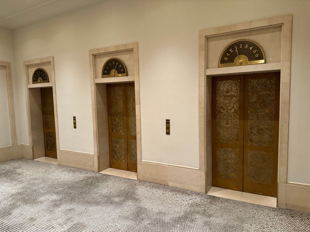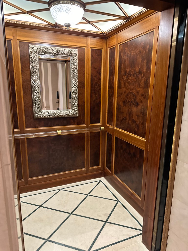 Die Aufzüge im Berliner Adlon Kempinski haben es Choanna, Vincent und mir von Beginn an angetan. Sie sind nicht nur ein klassisches „Transportmittel“, sondern auch echte Kunstwerke. Sie sind aus edlen Materialien gefertigt, wie Marmor, Messing, Holz und Glas, und mit kunstvollen Details verziert, wie Intarsien, Reliefs und Kronleuchtern. Die Aufzüge sind so gestaltet, dass sie den Stil und das Flair des „alten Adlon“ widerspiegeln, aber auch modernen Komfort und Sicherheit bieten.