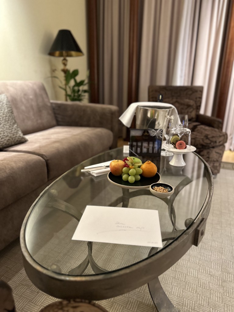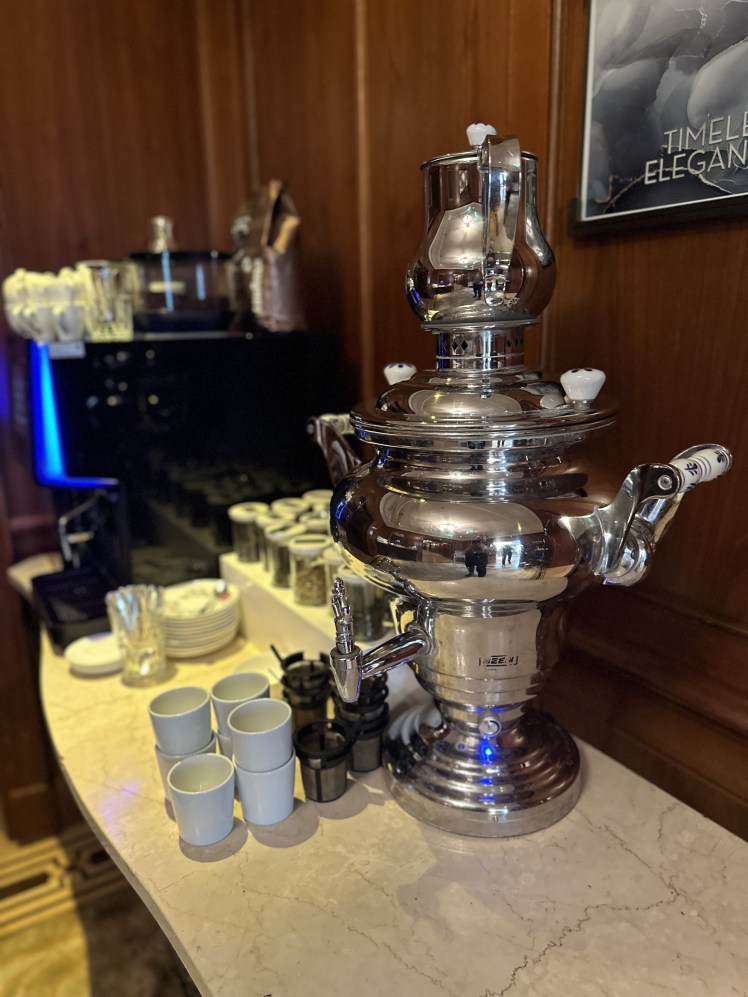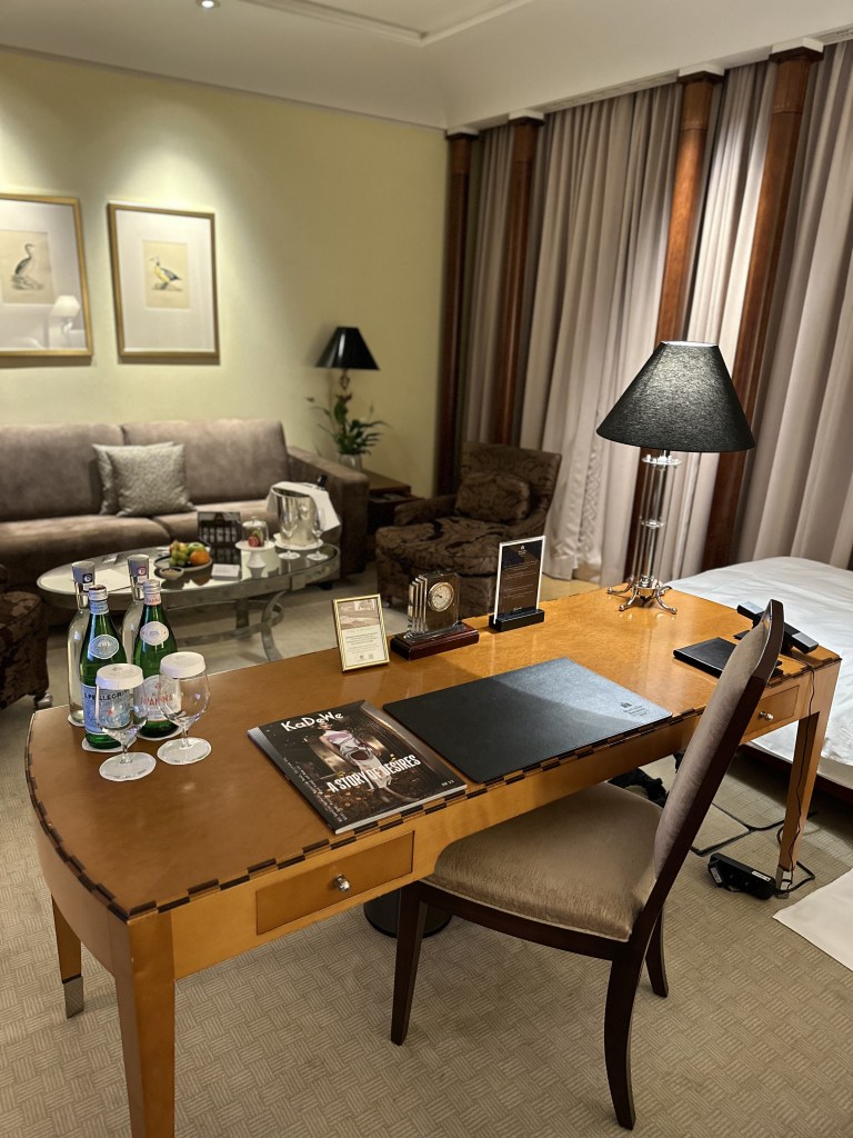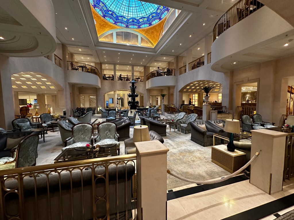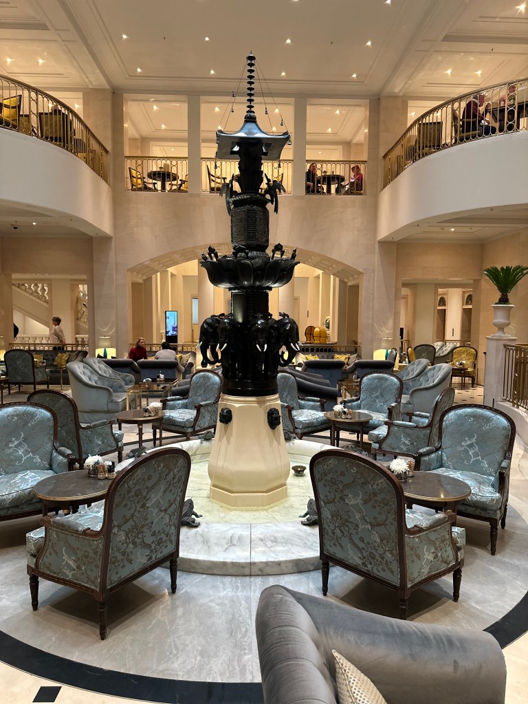 Wir konnten dem leisen Plätschern des Elefantenbrunnens lauschen und den dezenten Pianoklängen, die Abends zu hören sind. Nachmittags genossen wir eine Tasse Kaffee und ein Stück Kuchen. Dabei konnten aus einem umfassenden Angebot an ausgewählten Kaffee- und Teespezialitäten auswählen. Abends gab es eine unglaubliche Auswahl an Cocktails, erlesenen Snacks und verführerischen Köstlichkeiten aus der Patisserie.