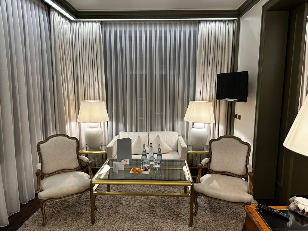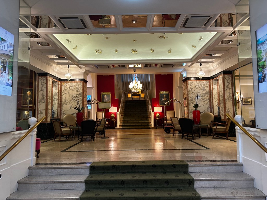Die beeindruckende Architektur des Europäischen Hofs ist ein wahres Highlight. Schon in der Lobby erwartet die Gäste ein Meisterwerk aus Marmor, edlem Holz und funkelnden Kristallleuchtern. Diese einzigartige Kombination schafft eine warme, einladende Atmosphäre, die sofort den Charme und die Klasse dieses Luxushotels spürbar macht.