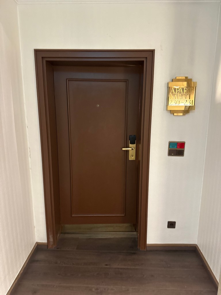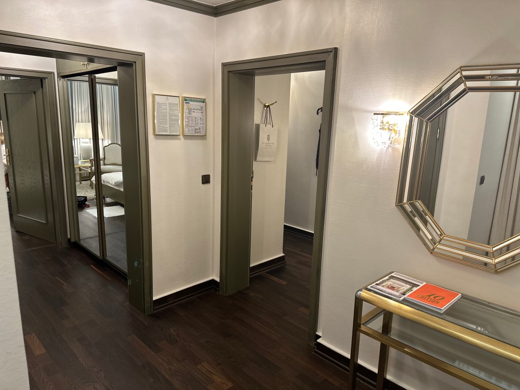 Schon beim Öffnen der Tür zu unserer Executive Suite (Zimmer 230-231) werden wir von einem Hauch von Eleganz umhüllt. Der großzügige Eingangsbereich, geschmückt mit stilvollen Farben, lädt uns ein.