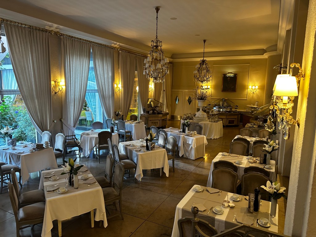 Ein Morgen wie aus dem Bilderbuch im Europäischen Hof Heidelberg! Die Sonne strahlt durch die großen Fenster des Frühstücksraums und taucht alles in ein warmes, einladendes Licht. Wir nehmen an einem der elegant gedeckten Tische Platz und können es kaum erwarten, das umfangreiche Frühstücksbuffet zu erkunden.