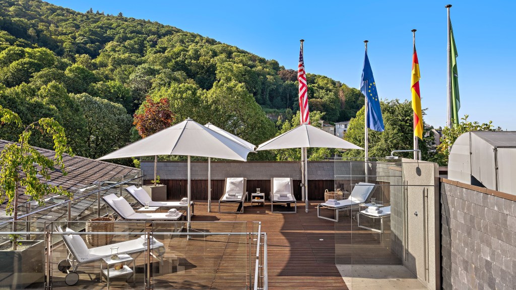 Zum Abschluss unseres Spa-Tages besuchten wir die Sonnenterrasse auf dem Dach des Hotels. Hier erwartete uns ein atemberaubender Blick über Heidelberg und die umliegende Landschaft. Der Blick in den Innenhof des Hotels ist wirklich umwerfend. Wir machten es uns auf den bequemen Sonnenliegen gemütlich und genossen die warmen Sonnenstrahlen. Vincent war begeistert von der Aussicht und wir alle fühlten uns rundum entspannt und erfrischt.